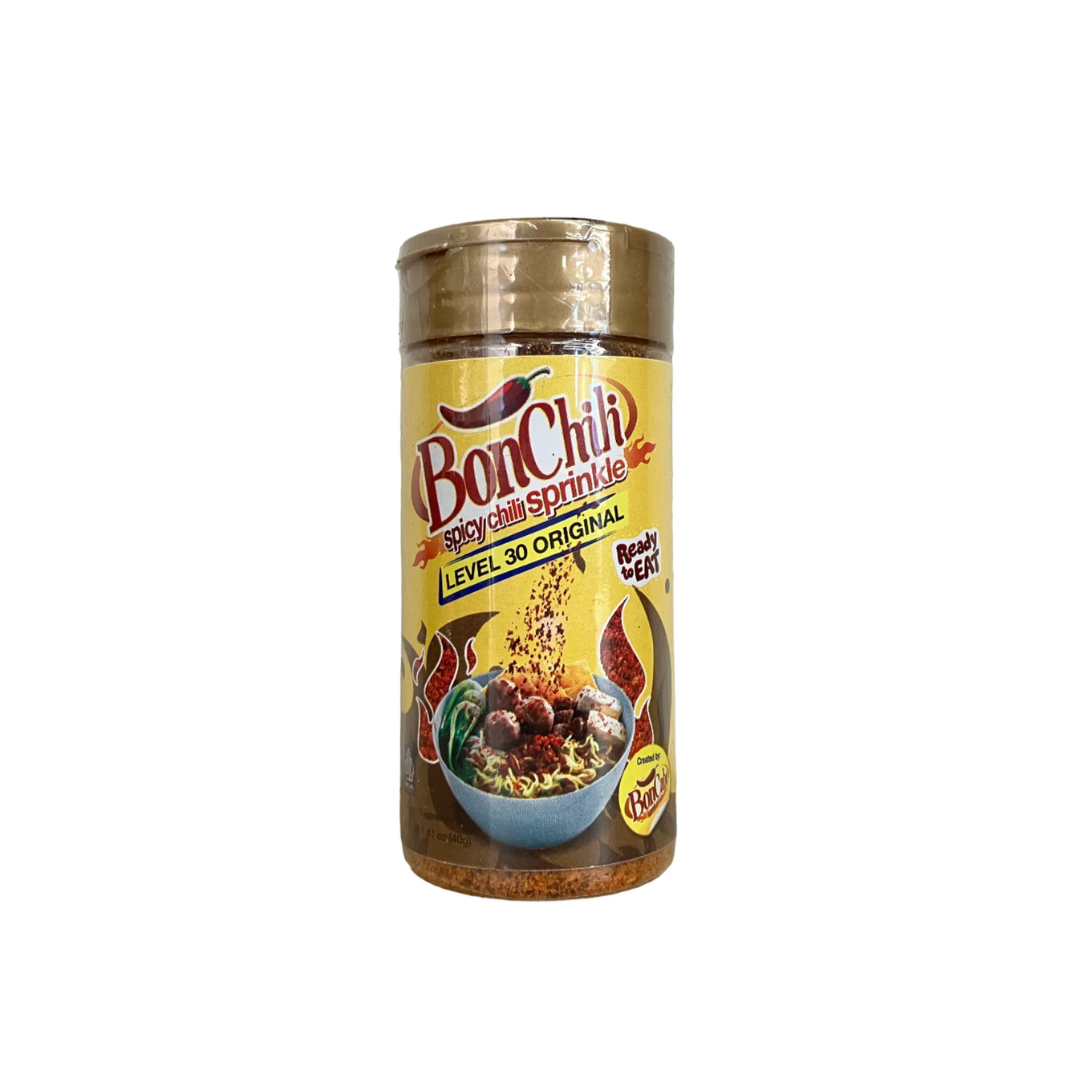 BonChili (BonCabe) Level 30 Original 40g is a dry chili sauce from Dapur KOBE with an extreme level of spiciness designed for true spicy food lovers. Made from selected chilies and natural spices, this convenient bottled product delivers a potent spicy sensation to rice, noodles, and meatballs.