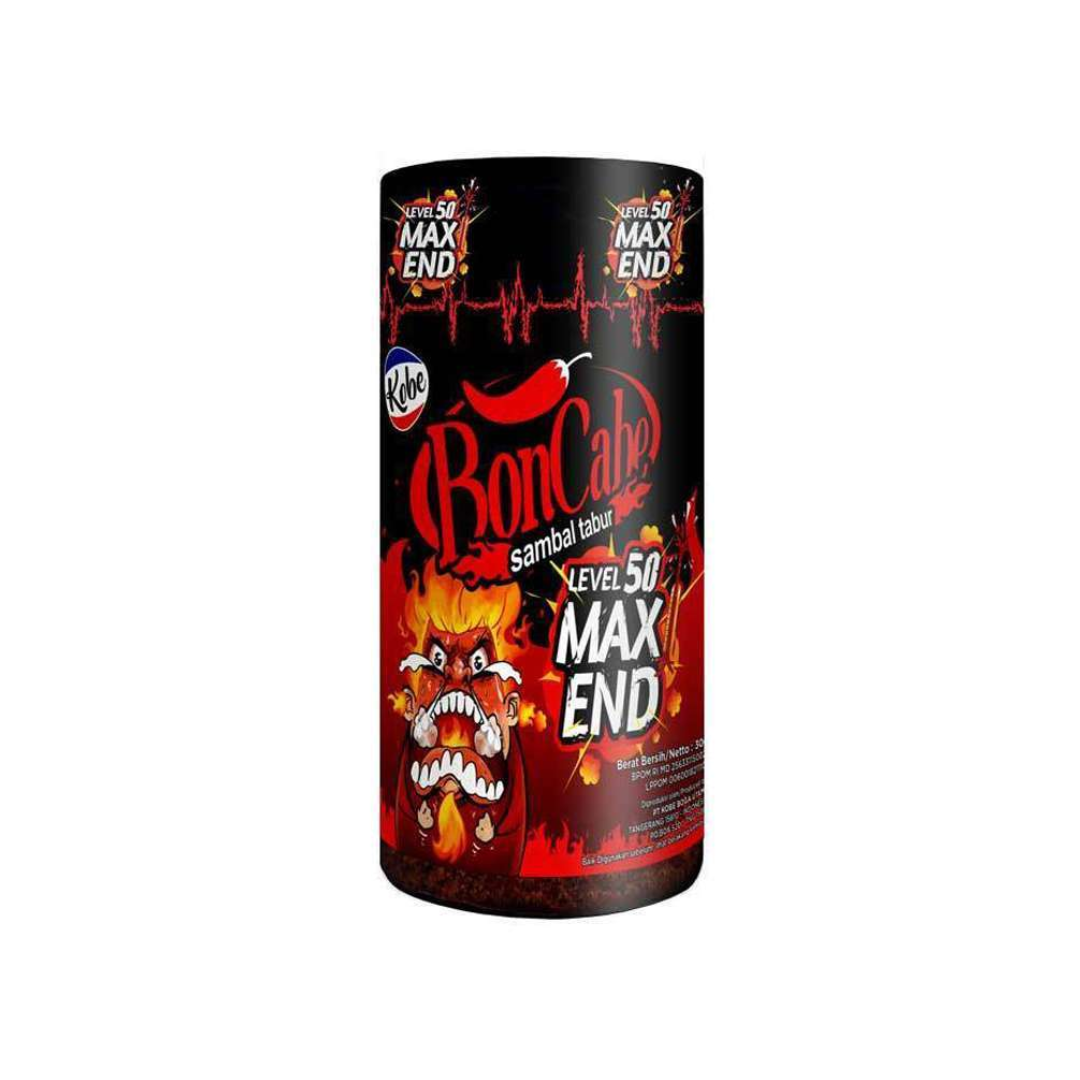 BonCabe Level 50 Max End 30g is the hottest chili sauce variant from BonCabe (PT Kobe Boga Utama), designed for lovers of extreme spiciness. Made from selected dried chilies, this seasoning offers a consistent, sharp, spicy sensation, perfect for sprinkling on instant noodles, fried rice, or meatballs to enhance the flavor.