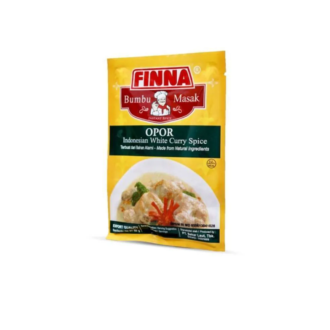 FINNA Opor Seasoning (50g) is a practical instant seasoning for making savory, delicious, and rich Indonesian chicken opor without the hassle of mixing spices. This seasoning delivers a distinctive aroma and authentic flavor perfect for special dishes. It’s perfect for 500g of chicken with added coconut milk.